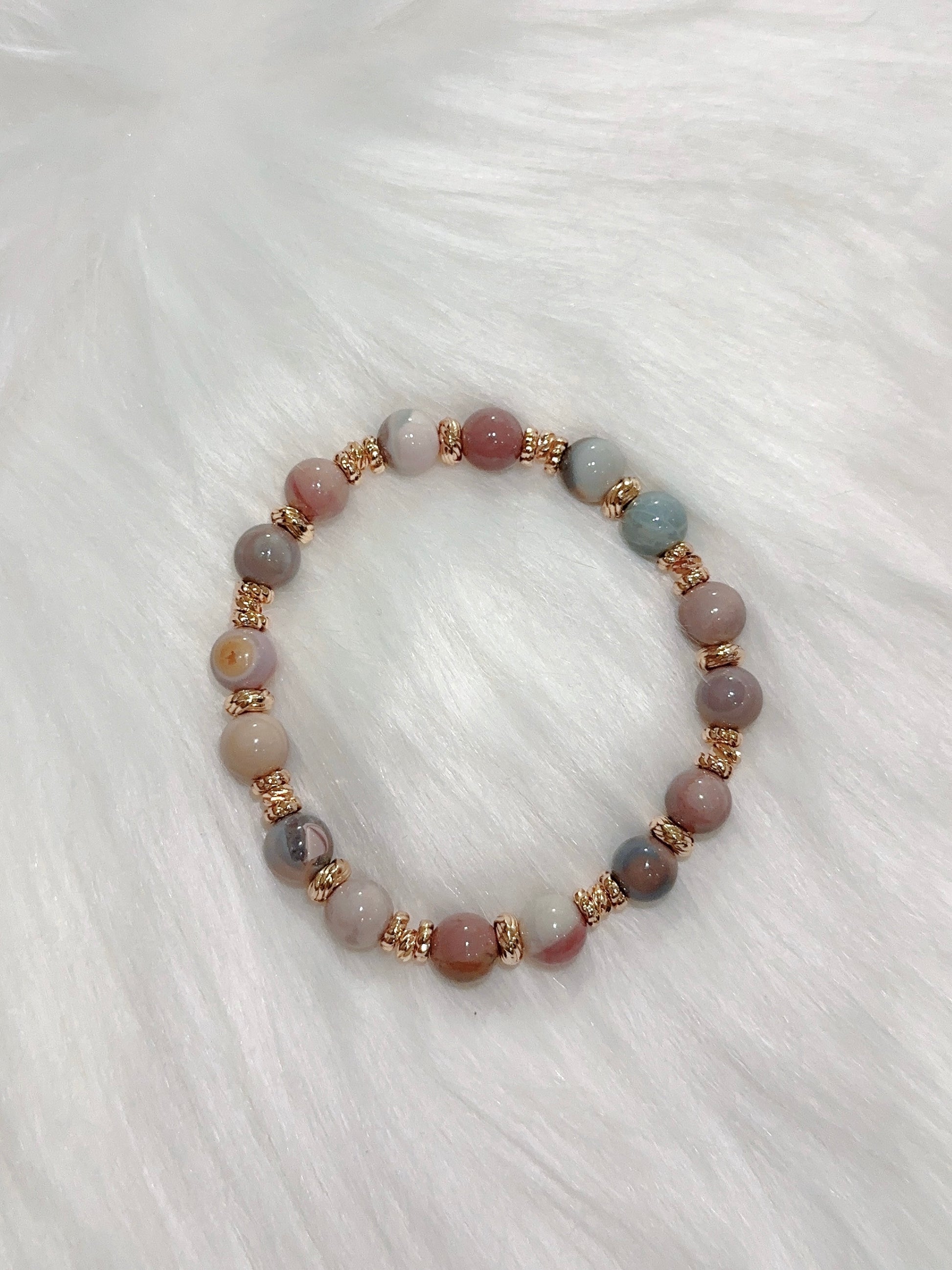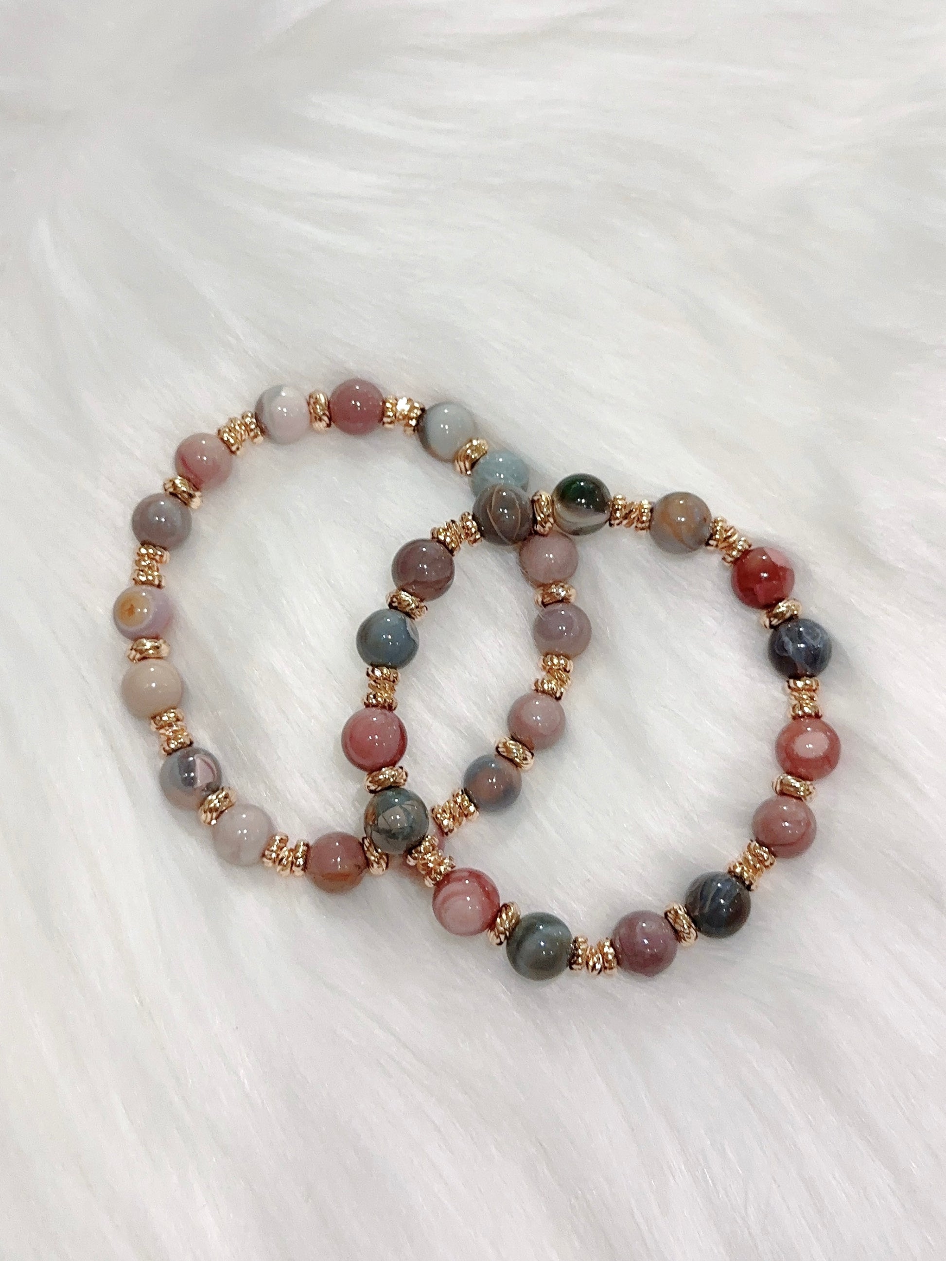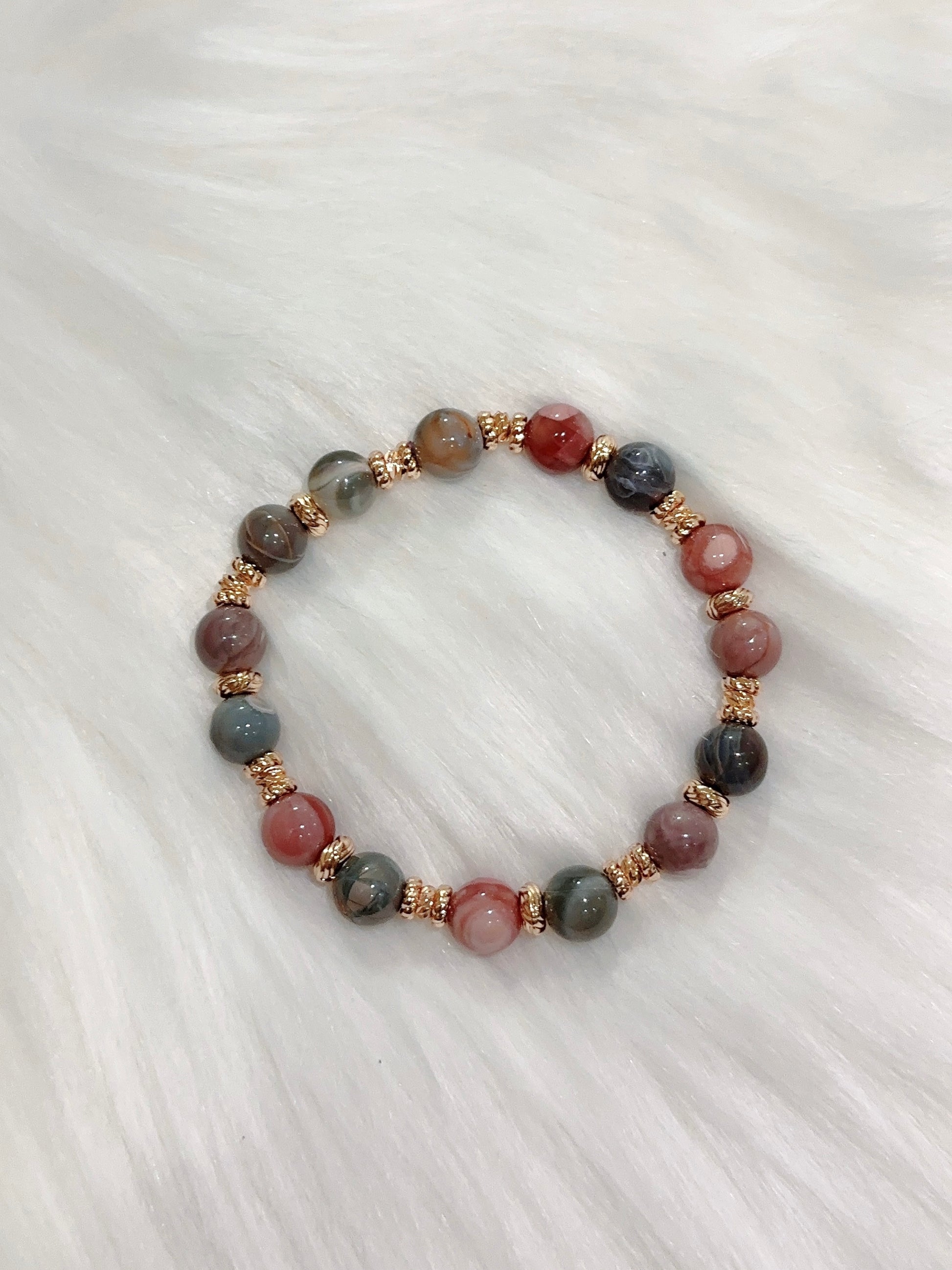Wearing Agate helps bring positive energy into our lives. Agate helps cultivate positive feelings of peace, calmness, and appreciation. It is believed to bring good luck and abundance, balance and harmony, protection and security.
