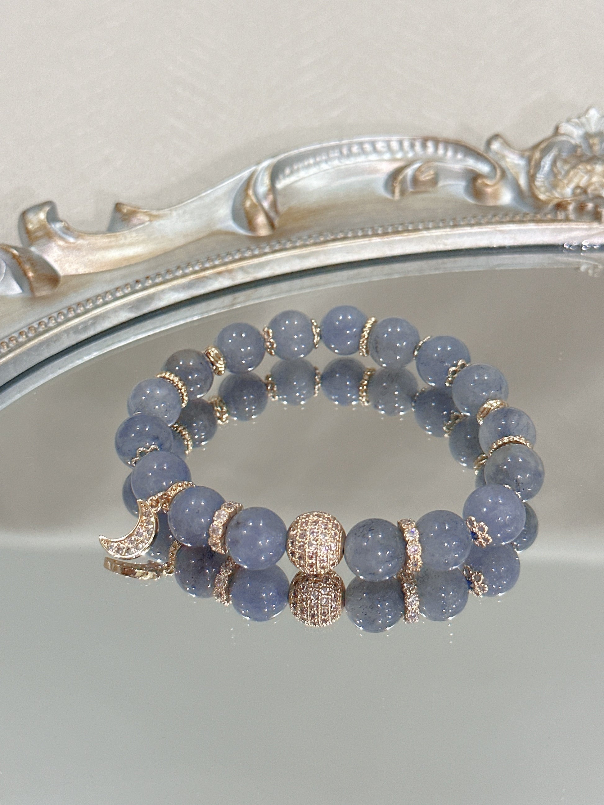 To prolong the shine of your gold plated/silver jewelry, avoid coming into contact with water, fragrances and lotions. Some crystals are not water-friendly.
