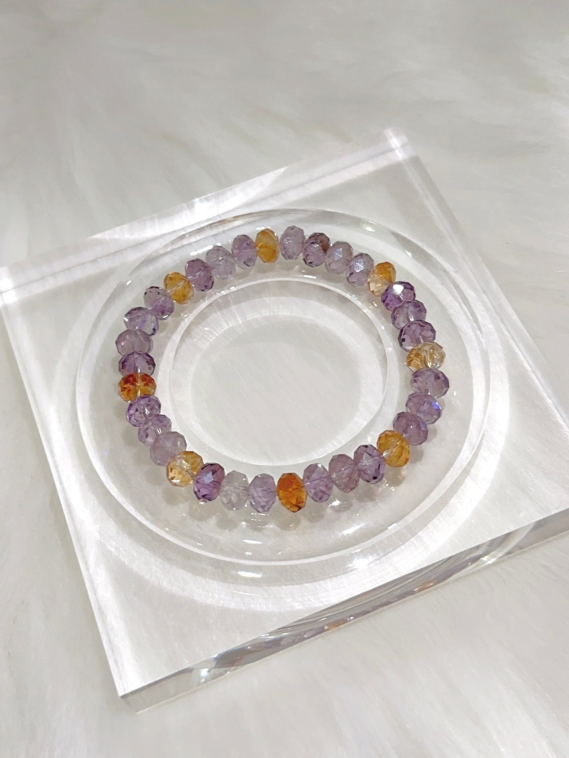 Ametrine《紫黄晶》is the mixture of Amethyst and Citrine. It is a crystal of luck and wealth. Often used to manifest financial abundance and opportunities. It attracts wealth, prosperity and success. It imparts joy, wonder, delight and enthusiasm.